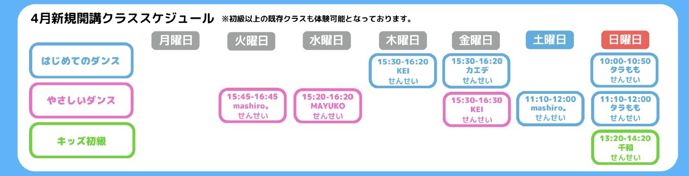 ※4月からの新規開講クラスは、下にスクロールしていただき、ご確認ください。